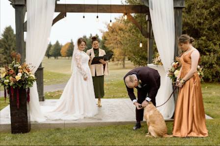 Un client a déclaré : "Amber est la meilleure officiant et nous sommes très reconnaissants d'avoir eu la chance de l'avoir pour notre journée de mariage Nous avons adoré la connexion, le cœur gentil et le soutien continu d'Amber. Le portail en ligne pour finaliser la cérémonie était génial pour choisir la façon dont le service se déroulerait. On a aimé la coordination de s'assurer que nous étions nus et que nos couleurs de mariage et notre lieu correspondaient Nous recommandons fortement Et nous sommes sincèrement reconnaissants que nous sommes deux mariées "